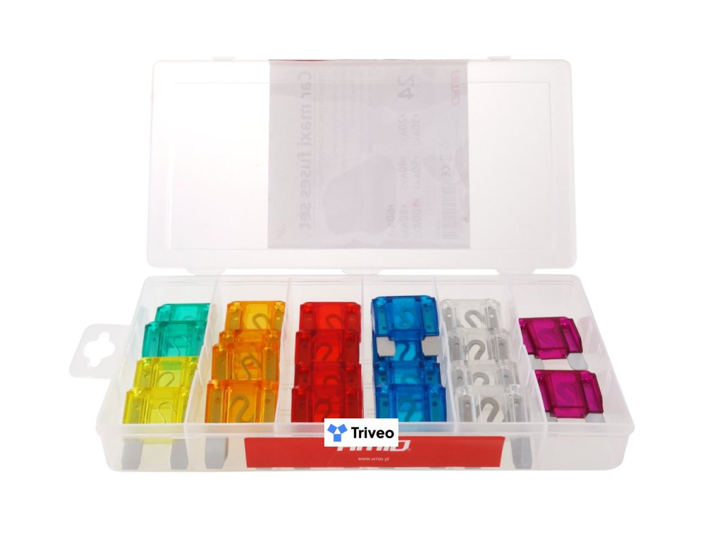 Vysoko kvalitná sada 24 ks automobilových poistiek typu MAXI chrániaca elektrickú inštaláciu vozidiel pred poškodením. Typ poistky: MAXI. Počet kusov v balení: 24 ks 20A x 2 30A x 2 40A x 5 50A x 4 60A x 5 80A x 4 100A x 2Dodatočné parametre