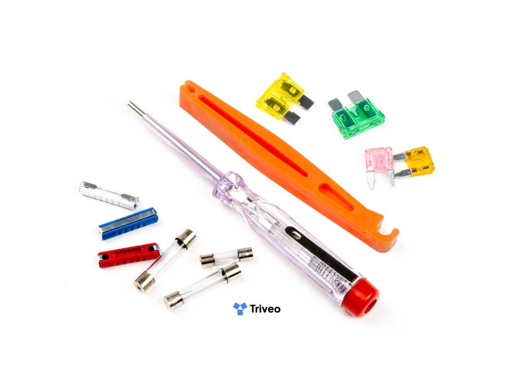 Obsahuje najobľúbenejšie poistky z kvalitnej zinkovej zliatiny s testerom napätia v rozsahu 6-24V a vyťahovák poistiek.