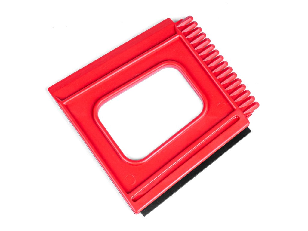 Škrabka na ľad vyrobená z odolného recyklovaného plastu. Má výhodný tvar a tri rôzne okraje: okraj s gumou na odstránenie pary, okraj na odstránenie námrazy, okraj na lámanie ľadu.