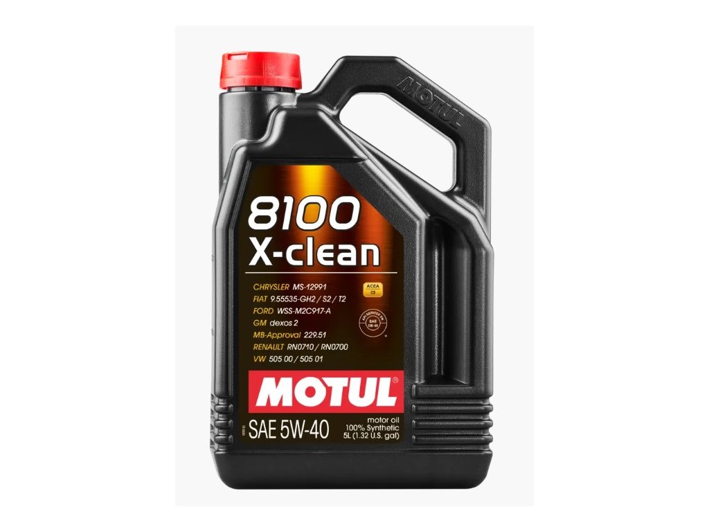 MOTUL 8100 X-clean 5W-40 spĺňa výkonnostné požiadavky normy BMW Long Life-04 skupiny BMW pre vozidlá BMW, MINI a ROLLS-ROYCE do modelového roku 2019, t. j. len do konca roka 2018. Pre modely od roku 2019 vyžadujúce schválený mazací olej BMW LL-04 sa musia používať produkty ako MOTUL 8100 X-clean+ 5W-30, MOTUL 8100 X-clean EFE 5W-30, 8100 X-clean Gen2 5W-40 alebo Specific LL-04 5W-40. Úroveň výkonu FIAT 9.55535-S2, T2 a GH2 vyžaduje, aby motorový olej kombinoval normu ACEA C3 a viskozitný stupeň 5W-40, aby dokonale mazal niektoré benzínové motory vozidiel FIAT, ALFA-ROMEO a LANCIA vyrobené od júla 2007. Úroveň výkonu MS-12991 zodpovedá týmto špecifikáciám FIAT pre vozidlá CHRYSLER.