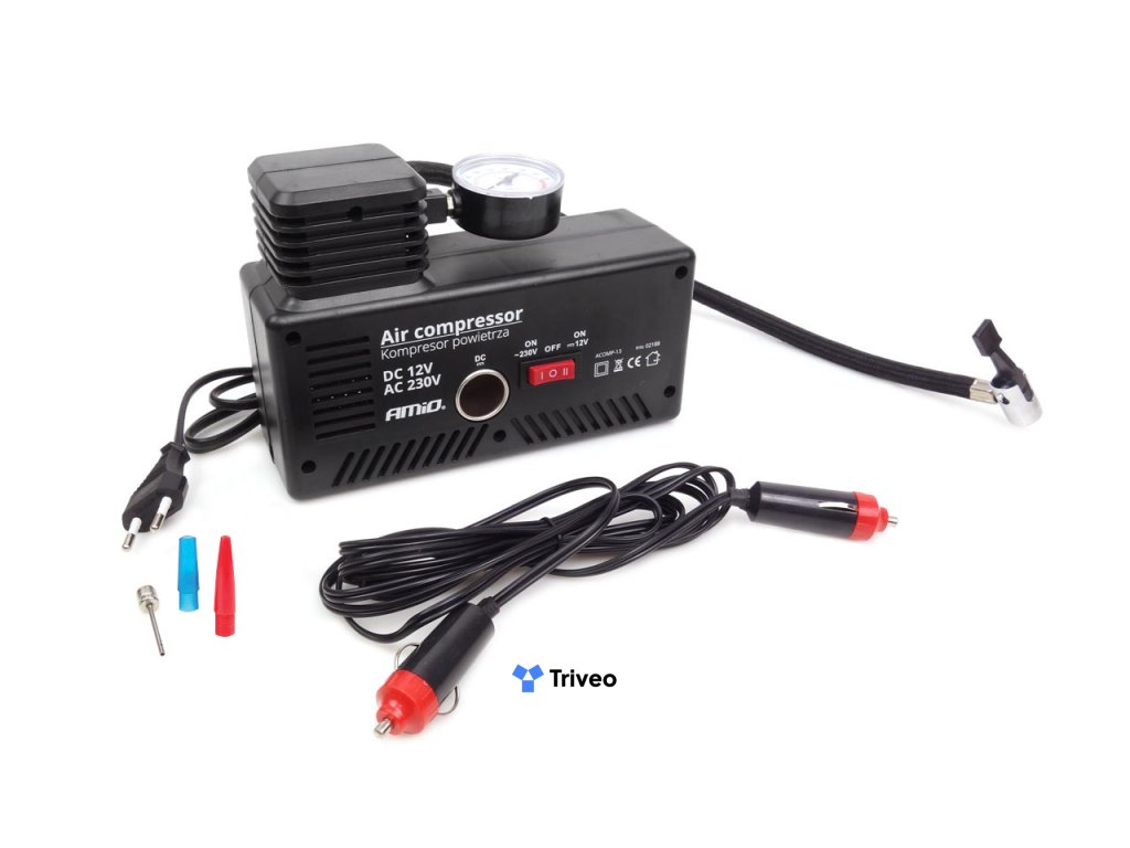 VLASTNOSTI: - napájanie cez zásuvku zapaľovača cigariet (12 V) / pripojenie pomocou elektrickej zásuvky 220V - prevádzkový tlak: maximálne 18 bar - sada obsahuje 4 konektory na nafukovanie, napríklad pre lopty, matrace, bicykle - integrovaný manometer - vyrobené z plastu TECHNICKé PARAMETRE: - vstupné napätie: 12V DC / 220V AC - maximálny tlak: 18 bar/250 PSI - dĺžka napájacieho kábla: 3m - dĺžka hadice:50 cm - váha: 1,65 kg ROZMERY: (D x š x V) - 200 x 70 x 114 mm OBSAH SADY: - kompresor - 3 adaptéry + ihla - používateľská príručkaDodatočné parametre